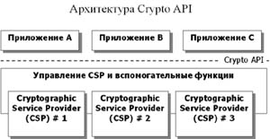 Если говорить об операционных системах Microsoft, то порядок взаимодействия приложений с криптографическими модулями регламентирует документ, который называется Microsoft Cryptographic Application Programming Interface. Функции, описанные в нем, поддерживаются операционными системами Windows и содержатся в определенных модулях. Но эти модули не реализуют криптографические алгоритмы, а обращаются к другим модулям, называемым Cryptographic Service Providers (CSP). Одновременно в операционной системе можно установить несколько CSP. При первом обращении к криптографическому сервису прикладная программа выбирает, с каким именно модулем CSP она будет работать (это зависит от того, какие криптографические алгоритмы ей необходимы). Но для того чтобы новый модуль CSP, реализующий сертифицированные алгоритмы, мог работать в Windows, и к нему могли обращаться прикладные программы, его необходимо заверить цифровой подписью Microsoft. А кроме того, необходимо «убедить» прикладные программы использовать этот модуль в своей работе.